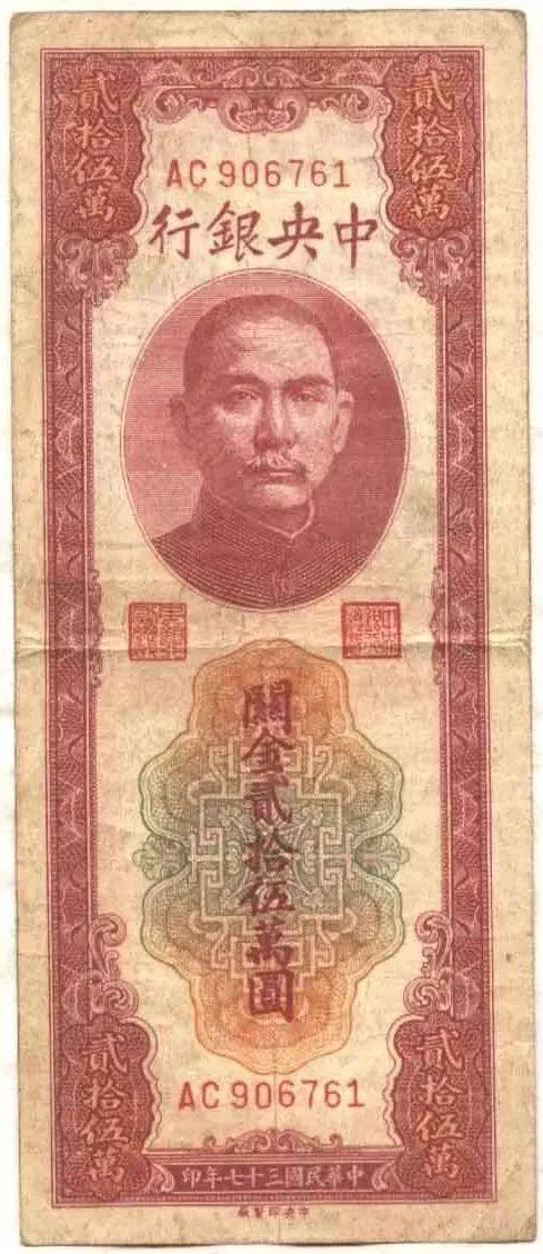 这里说的100多是图片中三张的市价,并不是一张的市价,一张只有几十,所以说如果你家里也有这样品相的纸币,千万不要当成什么宝贝,因为这种纸币在当年是很常见的,据说在1948、49年的时候,这种纸币曾经造成过通货膨胀,听说发工资都是提着大筐、小筐、推着车去领工资。