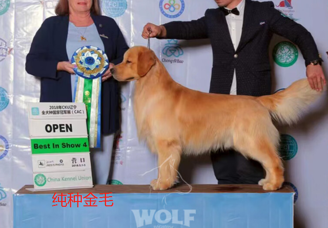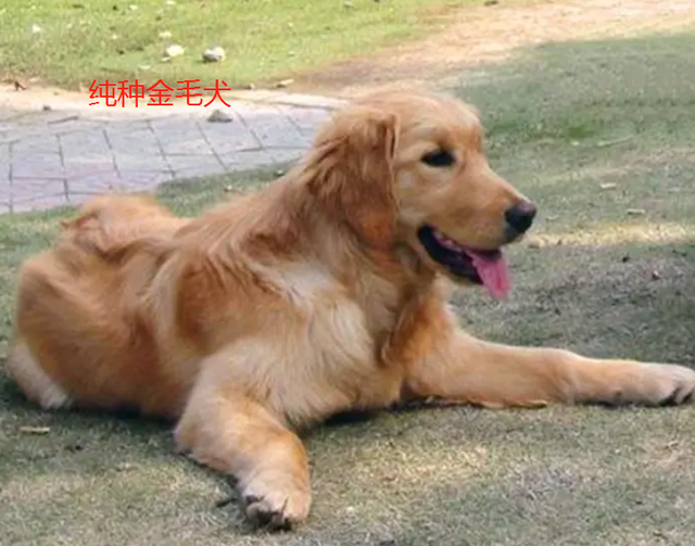 尾巴:纯种金毛狗的尾巴在放松时自然下垂,而且没有卷,纯种金毛还有一个特点,尾巴的长度和前脚一样。