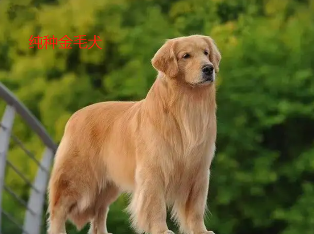 纯种金毛犬的特征:骨骼清晰、骨量大、尾巴、嘴巴、耳朵、鼻子、胸部、尾根、脚掌、毛发、四肢发达、毛色。