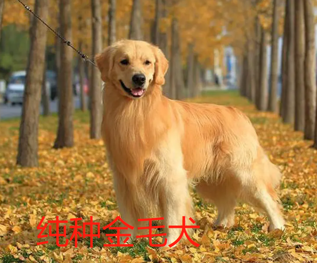 毛色:纯种金毛的毛色有黄色、棕色、褐色三种红色,毛呈卷曲状态。