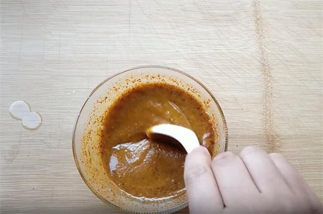 2.接下来我们来制作油酥,面粉30克,加入三克盐,放入一勺孜然粉,再加入一勺辣椒粉,辣椒可以不放,锅中放入40毫升的油烧开,然后下入花椒粒和香叶,炸至香叶呈褐色捞出,把热油浇在孜然和辣椒上,炸出香味,搅拌均匀备用。