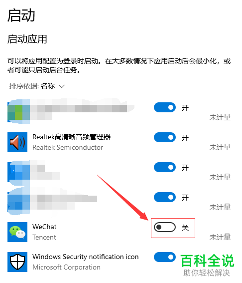 6. 然后在对应的右侧栏中找到“wechat”(微信),将其右侧开关关闭即可。