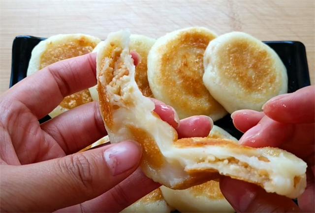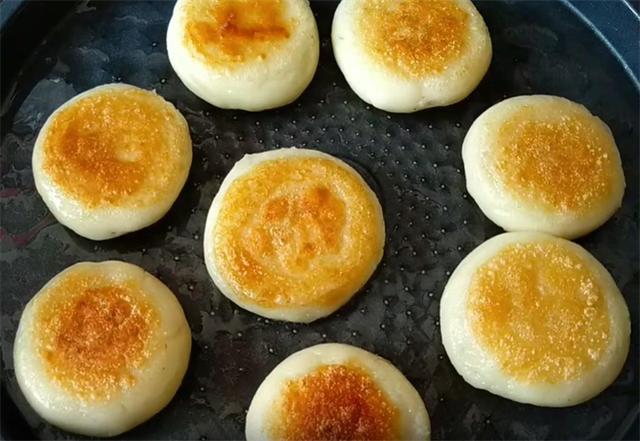 8.起锅开小火,放少许的油即可,油温五成热下入饼坯,烙至底面金黄,我们翻面,烙至另一面也呈金黄色,我们再次翻面,这样反复翻面,烙至两面都呈金黄色,表皮变硬即可出锅,这样出锅后不会粘连。