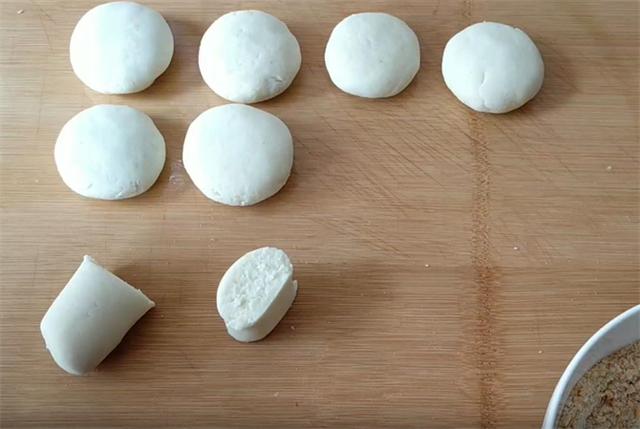 7.然后把它团圆按扁,这样我们的生坯就做好了,案板刷油放入生坯,防止粘连。