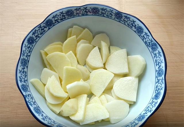 1.今天和大家分享一个用土豆和花生做的美食,首先我们把两个土豆洗净去皮切成薄片,放入碗中上锅蒸十分钟,也可以放入微波炉高火十分钟。