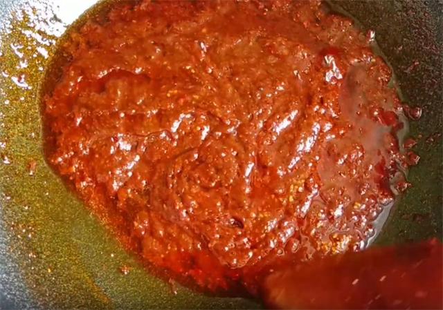 5.这时我们把火调成小火,倒入孜然粉,喜欢吃辣的也可以加一些辣椒粉,加入两种酱料,大家记住熬酱料一定要用小火,不停的翻炒,防止粘锅底,炒至酱料冒泡,加入素蚝油,继续翻炒一分钟,出锅前加入味精即可,因为不是商业版的,我们不需要加入太多的配料,这个酱料属于万能酱料,刷各种饼类,都很美味,主要是可以保存很长时间,用起来很方便。