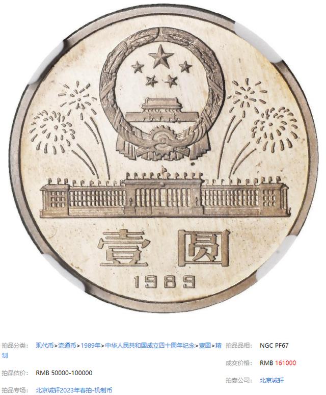 百科网在前段时间,就和大家提到了一枚NGC67分的89年1元,它拍出了16.1万。 没想到不少朋友看到后,非常激动地表示,自家就有许多这样的硬币,并且愿意低价转让,这到底是怎么回事呢? 作为八大珍之首的它,真的会这么常见吗,又有谁可以找到呢? 很多人都有的89年1元1989年,我国就只发行了一种1元硬币,它是为了庆祝新中国成立40周年而发行的,在币面上也有显眼的“40”字样。