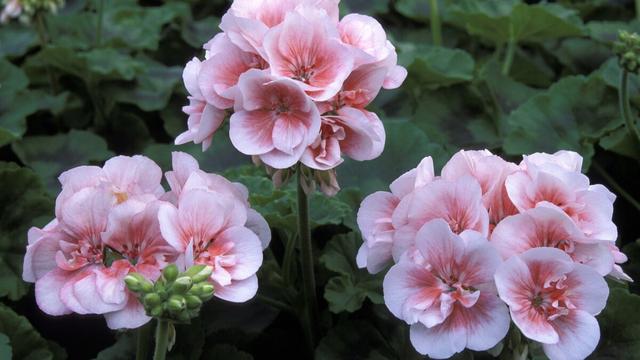 给天竺葵浇水,最好保持宁干勿湿的浇水原则,每次准备浇水时,用水质探一下盆土,表层下去3到5厘米,盆土还是干燥,就可以进行浇水了。等到夏天来了,温度高了,开花少了,进入休眠期了,就要减少浇水的频率,每次干透再浇透。