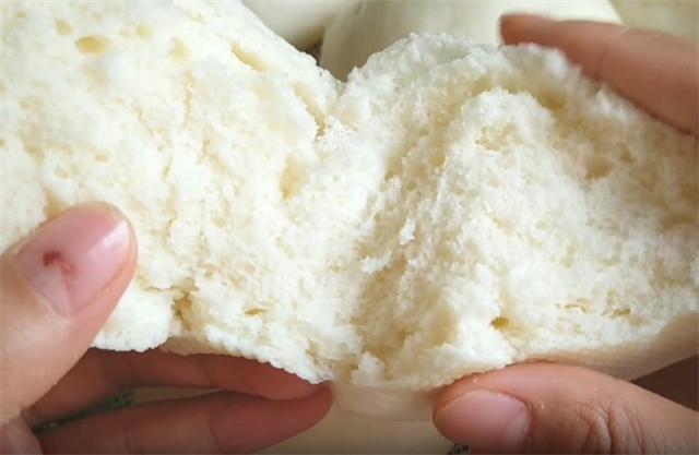 6.时间到我们开盖,大家可以看到右面的这个馒头表面不是特别光滑,造成这种现象的原因就是我们在揉搓馒头面剂的时候没有揉均匀,没有揉到位。