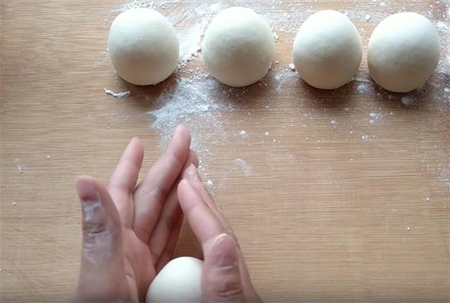 3.接下来我们把面剂向里面边翻转边按压,这样揉搓重复至少20次,这样做的目的能够使面团起筋,增加它的层次感,从而使口感更加筋道,直到揉出一个光滑的平面,我们把它整理成馒头的形状,这样做出的馒头表皮特别的光滑,不会有凹陷的地方。