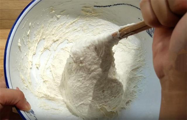 1.今天和大家分享一个发面素馅饼的简单做法,我们用茄子和青椒做馅,不用揉面,不用擀面,做出的馅饼超级柔软,而且凉了不硬,薄皮大馅。我们准备普通面粉300克,加入三克酵母,再加入三克白糖促进发酵,温水250毫升,先把酵母化开,然后顺着一个方向边倒边搅拌至面糊上劲,我们像这样顺着一个方向多搅拌一会儿,这个过程相当于我们平时揉面,这样能够使面更加细腻,没有面疙瘩,然后盖上保鲜膜密封醒发至两倍大。