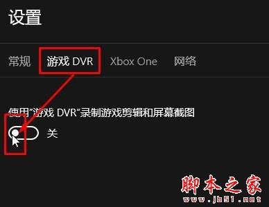 3、点击“游戏DVR”,在下面将 使用“游戏 DVR” 录制游戏剪辑和屏幕截图 的开关开启即可。