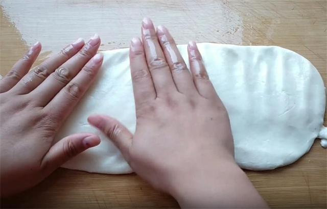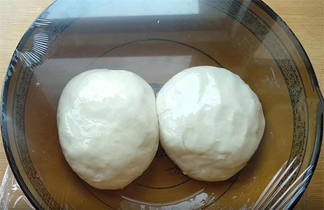 2.刷油也是能够使面团更加柔软,大家可以看到醒好的面,它的表面是特别的润,特别的光滑的,而且我们用手轻轻一按,它就延展开了。