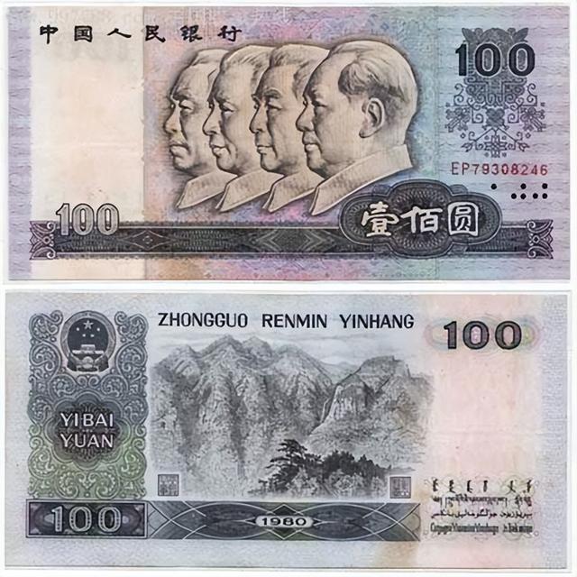 图片中这种小时候用过的100元大钞,现在已经1000一张了你还有吗?不知道你还有没有印象呢?这就是第四套人民币的80版100元,发行于1988年的5月10日,这也是建国后我国发行的第一张100元面值的钞票。