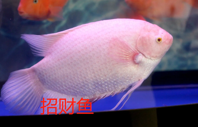 招财鱼:招财鱼称军舰、长丝鲈,原产于越南、泰国、马来西亚等,是鲈形目鲈亚目河鲈属的一种鱼类,这一科的鱼一般体型较小,呈椭圆形,体色灰褐色,腹鳍变为两条长丝鳍,每条呈淡红色。