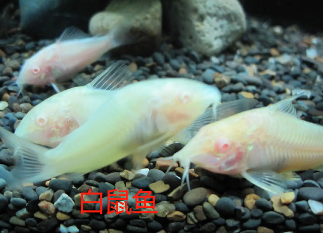 白鼠鱼:体表乳白色,红眼清晰可见,性情温和,可成群饲养。