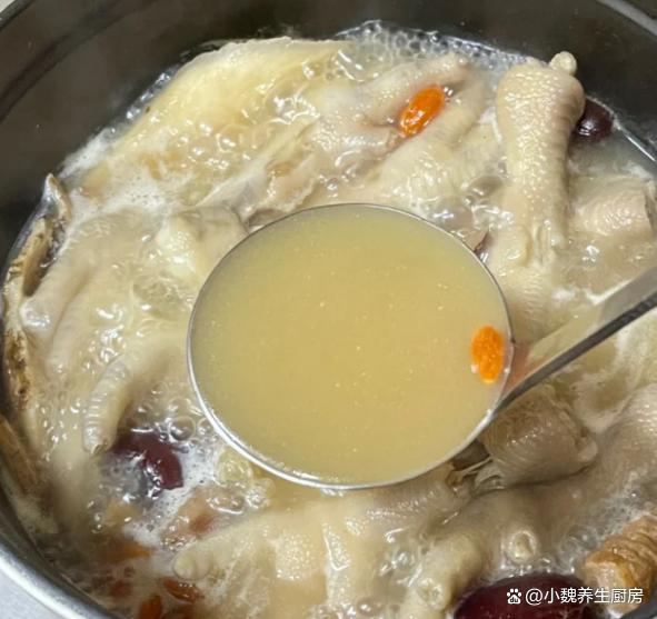 (www.ws46.cOm) 7:让汤品慢慢煮到变色,出锅前可以调味(胡椒粉和食盐即可),不需要添加其他佐料,焖煮入味即可,出锅享用。 党参桂圆鸡爪猪骨汤的烹饪小贴士:首先,食材的预处理至关重要。鸡爪需提前用料酒和姜片焯水,去除腥味和血水,使汤色更加清澈。猪骨同样也要经过焯水处理,不仅能去腥,还能让骨髓中的精华更好地融入汤中。其次,火候的控制是熬制好汤的关键。初时应用大火将汤水烧开,迅速锁住食材的鲜味和营养,随后转小火慢炖。小火慢炖不仅能让食材的精华充分释放,还能使汤品更加浓郁醇厚,口感层次分明。 再者,党参和桂圆的加入时机也需讲究。一般建议在汤品炖煮至半程时再加入,这样既能让它们的药性与食材充分融合,又能避免长时间高温导致营养流失。同时,根据个人口味,可适当调整党参和桂圆的用量,以达到最佳的食疗效果。 最后,别忘了在出锅前加入适量的盐调味,但切记不要过早加盐,以免影响食材中蛋白质的释放和汤品的鲜味。一碗热气腾腾的党参桂圆鸡爪猪骨汤,不仅暖身暖心,更是秋冬季节滋补养生的佳品。遵循这些小贴士,相信你能在家轻松熬制出一锅色香味俱佳的滋补汤品。 你们是否喝过这款党参桂圆鸡爪猪骨汤吗?(文中的配图都出自网络)