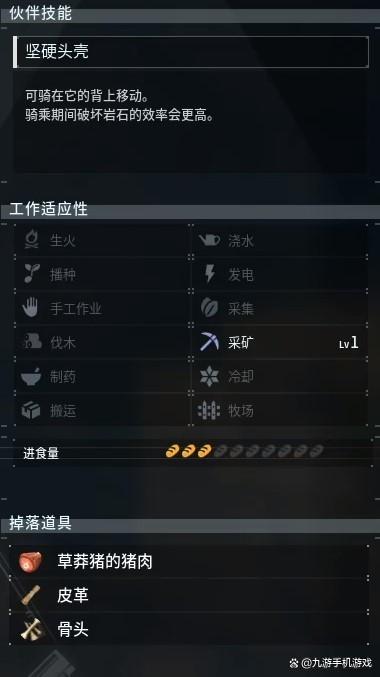 骨头其实玩家只要找到草莽猪就可以,直接击杀就会掉落猪肉以及皮革和骨头三样东西,关键是这种帕鲁很常见,即便是抓获也没什么用,一级采矿效率非常低。所以你只需拿个十字弩去野外,看到一个直接秒掉就行,伤害也刚刚好。