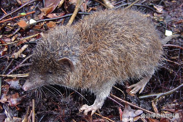 这只壁虎首次于白天在尼诺科尼斯桑塔纳国家公园的莱内哈拉洞穴中被发现,最初躲避了科学家的捕捉。晚上返回时,由于弯趾壁虎是夜间活动的,因此不会那么容易受惊,科学家们捕获了十只壁虎。遗传和形态分析证实它是一个未描述的物种。 这是东帝汶民主共和国科学家描述的第一个弯趾壁虎物种,该国之前曾在那里发现过弯趾壁虎,但从未在物种层面进行过描述。由于东帝汶独立前的暴力和动乱,该国的生物调查工作有限,因此科学家认为,该国可能发现了更多未描述的物种。该物种是在尼诺科尼斯桑塔纳国家公园的莱内哈拉洞穴中发现的。 捕捉壁虎的探险队还发现了一些正在分析的植物和螃蟹,可能也被证明是未被描述的物种。 特殊的绰号“桑塔纳”源自其发现地尼诺·科尼斯·桑塔纳国家公园,该公园的命名是为了纪念出生在该公园境内的自由战士尼诺·科尼斯·桑塔纳。 4、Gymnures(Podogymnura intermedia和P. minima),菲律宾 P. intermedia有着金棕色的皮毛和尖尖的鼻子,看起来很像鼩鼱,但它属于一种被称为“裸鼠”的哺乳动物。它们也被称为毛刺猬或月鼠,与刺猬密切相关。与所有其他裸蝽属成员一样,中间裸蝽也发现于菲律宾。它是在对棉兰老岛东部山区进行调查时发现的,那里以前从未对哺乳动物进行过调查。
