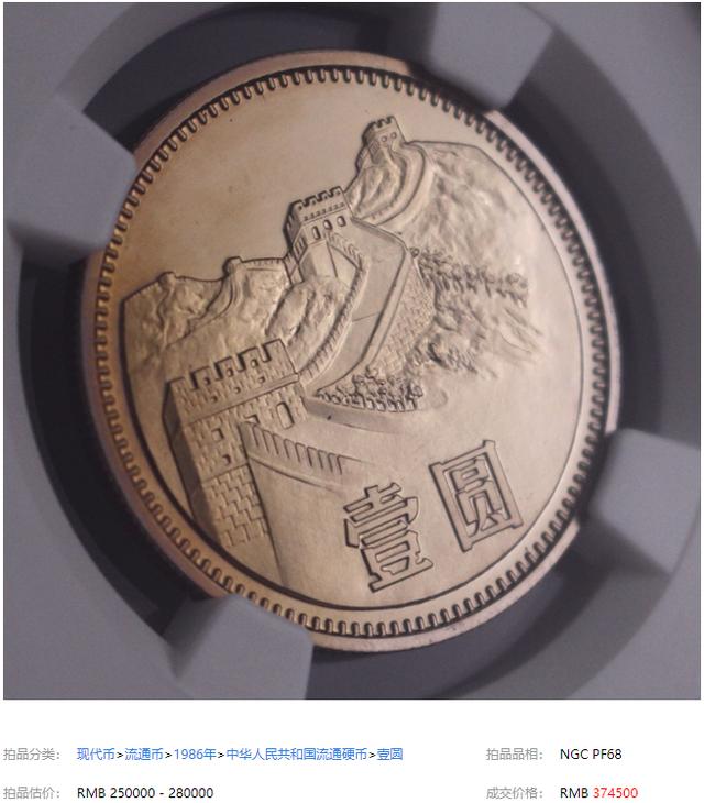 在今年,就有NGC68分的00年牡丹1元普制币,拍出了1.1万多。