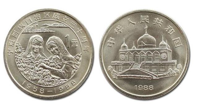 它们分别是建行币,宁夏币和广西币,其中建行币已经成为了币王,如今单枚就要好几千了,而今天要分享的却是宁夏流通纪念币,这种1988年的1元,其实是我国发行量最少的流通纪念币只发行了156万枚。