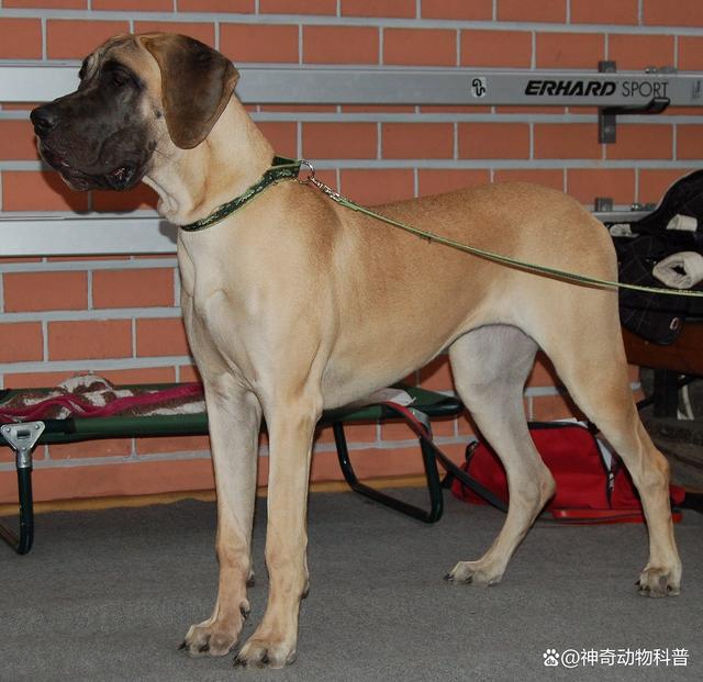 大丹犬是一种大型犬种,原产于德国。大丹犬是中世纪猎犬的后裔,用于猎杀野猪和鹿,也被用作德国贵族的守护者。它是世界上两个最大的犬种之一,与爱尔兰猎狼犬并列。这些狗被用来在王宫宫廷中捕猎熊、野猪和鹿,而这些最受欢迎的狗则在晚上呆在领主的卧室里。这些Kammerhunde(室内犬)配备有华丽的项圈,有助于保护沉睡的王子免遭刺客的袭击。 10、藏獒(Tibetan Mastiff)