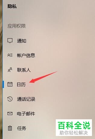 3. 第三步进入【隐私】页面后,根据下图箭头所指,点击左侧【日历】选项。