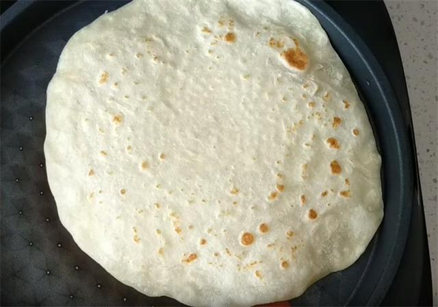 5.烙至饼微微鼓起,我们翻面,烙至饼全部鼓起即可出锅,全程约40秒左右,不要烙的时间长,水分流失,饼也会硬。