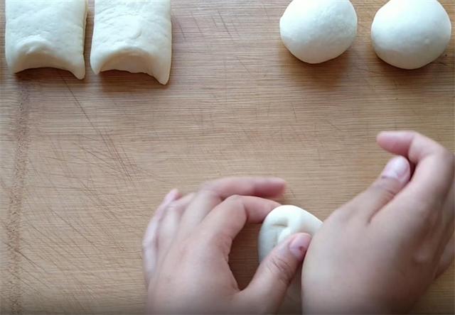 2.我们面一定要多揉一会儿,揉至光滑,然后搓成长条,下8到10个面剂,把面剂揉成一个光滑的面团备用。