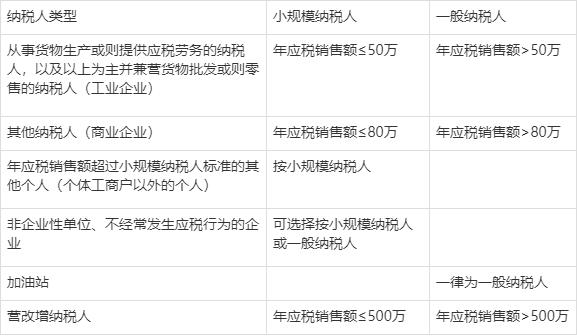 我们先来看看小规模纳税人和一般纳税人的认定标准: