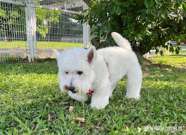 虽说贵宾犬粘人的样子很可爱,但是如果过度的话,主人就比较烦恼了,只要主人一出现必定是围绕在她身边,长时间看不见主人,就容易叫唤。贵宾犬和其它许多的狗狗一样,爱闹腾也有强烈的好奇心,也有啃咬东西的习惯。家里的鞋子、柜子、沙发、床单、地毯、球球、绳子等等,可能都要在贵妇犬的嘴巴里过滤一遍。 2、西高地白梗(www.ws46.com) 西高地白梗,来自苏格兰的西部高地的纯白色犬,脸有点像狐狸,鼻梁较长,具灵性,顽强而勇猛,样子很讨人喜爱,与苏格兰犬有很多相似之处,与苏格兰、凯安、短脚长身梗种是同一个祖先,然后再分布到英国各地的。在19世纪中叶,人们从高地白犬中选种培育出一种正宗的白色犬种。起初以其发源地阿盖尔郡的波多罗克命名。后来才命名为西部高地白梗,它能在多石地区不知倦怠、坚忍不拔追猎狐狸等。