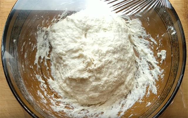 1.今天和大家分享一个超级柔软的发面饼做法,不揉面不擀面,简单快速。我们准备面粉300克,高筋粉、中筋粉都可以,加入三克酵母,再加入5克白糖促进发酵,温水250毫升,先把酵母化开,然后边倒边搅拌,搅拌至没有干面粉,我们顺着一个方向大约再搅拌两分钟,使面糊更加均匀,盖上保鲜膜密封醒发至两倍大。