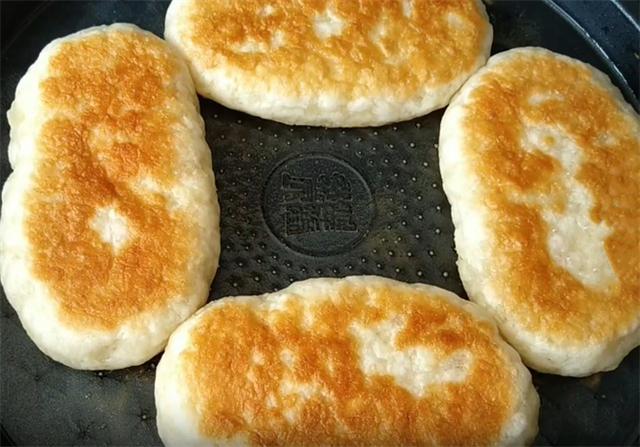 7.烙至底面微黄我们翻面,我不建议盖盖子,这样会影响面饼的起发,烙至另一面微黄,我们再次翻面,反复翻面,直至烙至两面都呈金黄色,按压快速回弹即可出锅,全程大约烙至3分钟即可。