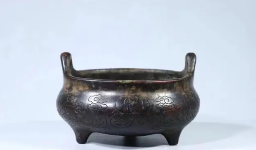 品名:清代铜胎桥耳三足炉 规格:高8.5cm 口径13cm 重量:1162克 说明:桥耳炉,桥的含意为媒介,可通达妙境,其耳似桥,意为通达。桥耳炉,亦称“凤眼桥耳”以其双耳形矮细长,似丹凤之眼,故名之。这件清代三足桥耳铜炉,精铜铸造,器式古朴典雅,圆口,短颈,扁圆腹,口沿上塑双桥耳,下承三乳足,沉稳大气,炉底识款“(www.ws46.com) 朵云斋”,包浆浑厚,通体古栗,品相完美,收藏陈设精品!