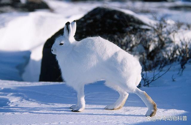 北极狐的身上覆盖着密集的绒毛和较少的针毛,这使得它们能够在极寒的冰原上生存,甚至在零下50℃的环境中也能够生存下来。它们的食物主要包括旅鼠、鱼类、鸟类、鸟蛋、贝类、北极兔和浆果等。由于其珍贵的毛皮,北极狐已经被人工繁殖,出现了称为蓝狐、白狐等的品种。此外,还出现了一些突变品种,如影狐、北极珍珠狐、北极蓝宝石狐、北极白金狐和白色北极狐等,统称为彩色北极狐。 8、北极兔(-50℃)