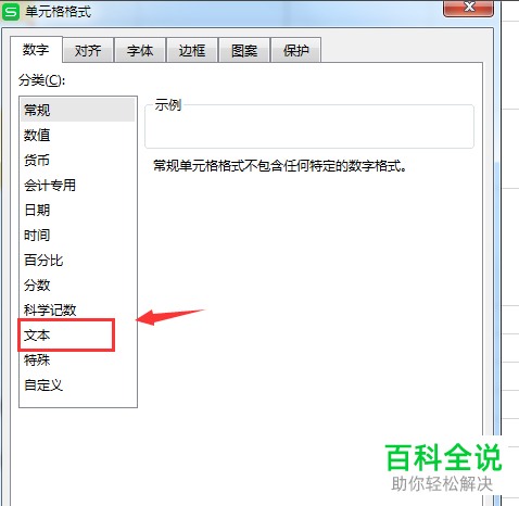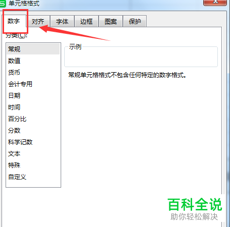 4. 在下图所示的单元格格式页面中,点击页面顶部的数字选项。