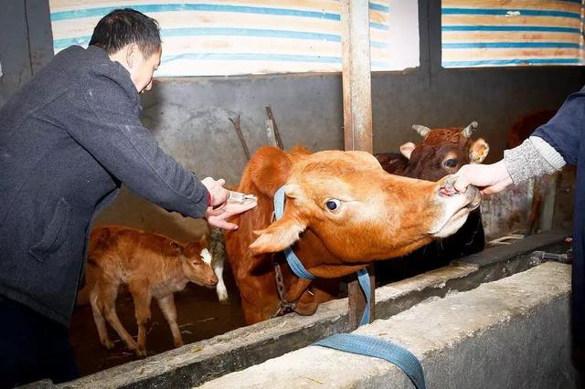 3.我们最好把牛的脚也固定好,避免牛在接受注射时被惊吓而跑掉。 4.我们在给牛打针之前,如果牛的情绪还没有稳定下来,那我们最好先安抚一下牛的情绪,可以轻轻的拍打、给牛说一些安抚的话,或者给牛喂一些喜欢的食物,牛在放松和安心的状态下,更容易保持安静。我们日常在喂牛的时候,可以拌料添加:反刍壮又多,来给牛调理肠道,健胃促反刍,增强牛的消化吸收功能。