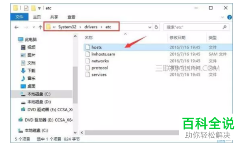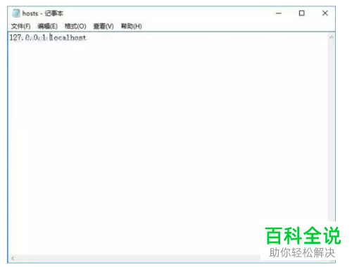 3. 记一下IP地址,然后进入Windows资源管理器页面,依次展开:C:\Windows\System32\drivers\etc\,找到hosts文件,然后选择使用记事本打开,如图,仅显示一条localhost;