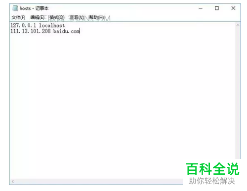 4. 将刚才记录的IP地址输入hosts文件中,格式为先输入IP地址,中间空格,后面则是网址(在二级域名前不用加www,如image.baidu.com);