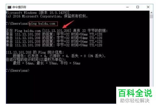 2. 然后在弹出的窗口中,ping需要的网站,就可以获得IP地址了,以百度为例,如图,111.13.101.208就是百度的IP地址;(www.ws46.cOm)