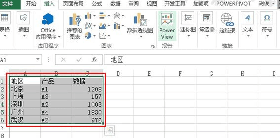 在微软新版本的Excel 2013中,有着一个非常强大的加载项--PowerView,什么是PowerView?简单地说,类似于一个数据透视表的切片器,可以对数据进行筛选查看,用它可以制作出功能丰富的动态图表。那小编就教你怎么在excel2013插入一个PowerView表格吧。 ①我们打开Excl2013,准备好数据源,如下图所示,选中数据区域,单击菜单栏--插入--Power View。