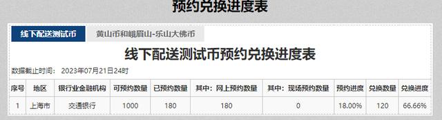 比较有趣的是,在预约入口中,我们还能看到此前线下配送测试币的兑换进度。 各行的预约入口,基本都能轻松在官网找到,大家也可以先去找找看。 普通币的预约,是很简单的,预约时间一到,就可以约了。 |