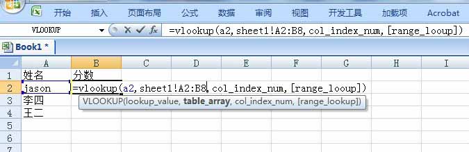 所以函数现在可以写成 =vlookup(A2,sheet1!A2:B8,2,[range_lookup])