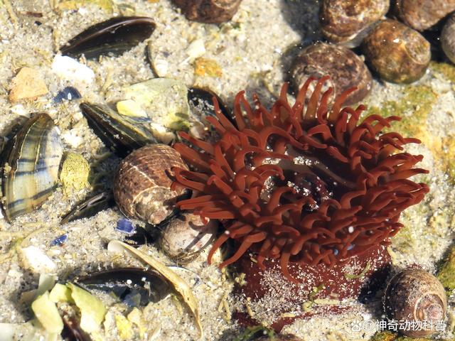 绣花脊熟若蟹,又被称为马赛克蟹,分布于日本、斐济、萨摩亚、澳大利亚、新加坡、马来半岛以及中国大陆的海南岛等地。它的身上覆盖着红白相间的网状花纹非常美丽。绣花脊熟若蟹主要栖息海水中,常见于低潮线至水深30米的岩石底部或珊瑚礁区域。它们的生存范围通常在海拔下限为-30米。绣花脊熟若蟹是已知最具毒性的螃蟹之一。它们体内可能含有河豚毒、麻痹性贝毒和海葵毒等种毒素。一只成年绣花脊熟若蟹体内的毒素足以毒死45000只小老鼠。 6、等指海葵(学名:Actinia equina)