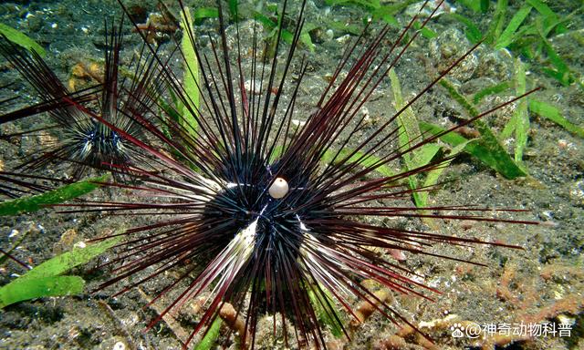 刺鳐,通常被称为黄貂鱼,属于软骨鱼类。它们的身体扁平,尾巴细长,某些种类的刺鳐尾部上有一条或几条的边缘带有锯齿状毒刺。如果被这些毒刺刺中胸腔,会造成重伤甚至死亡,特别是如果心脏受到损伤,需紧急开刀,不过伤及心脏通常都难逃一死。已知的刺鳐约480种,据1995年的《危险海洋生物─野外急救指南》,刺鳐是目前所知体型最大的有毒鱼类,尾部可达37厘米长。 9、刺冠海胆(学名:Diadema setosum)