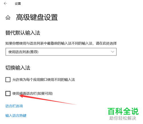 5. 最后,在打开的页面,将使用桌面语言栏选项前面的勾选取消即可隐藏。