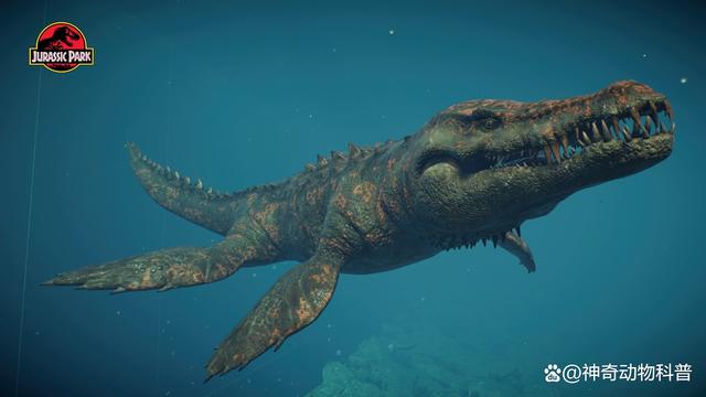 滑齿龙 滑齿龙是一种肉食性海洋爬行动物,属于蛇颈龙目中短颈部的上龙亚目。它的名字意为"平滑侧边牙齿"。滑齿龙生存于中侏罗纪的卡洛夫阶,大约距今约1亿7000万年到1亿5500万年前。在侏罗纪晚期,滑齿龙以其粗壮的身体和四片中等大小的桨鳍在海洋中游荡。它们的长颚上有尖锐的牙齿。滑齿龙的鼻腔结构使得它们能够在水中嗅到气味,从而能够远距离寻找猎物。除了上浮呼吸外,滑齿龙的整个生命周期都在水中度过。因此,它们是卵胎生动物,喜欢在浅海域产下幼崽。 8、剑龙
