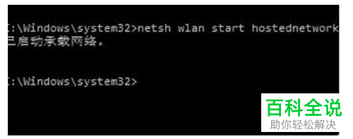 5. 然后再稍等一会,在刚才的命令提示符中接着输入:netsh wlan start hostednetwork回车。这样我们就可以看到已启动网络的提示,我们就可以在手机或平板上搜索到此WiFi,然后输入密码12345678即可进行连接上网了。