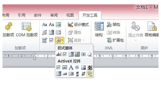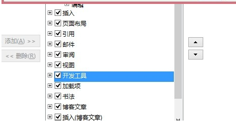 在打开的word文档中,找到“开发工具”菜单,如果没有该菜单就需要添加,添加方法。右击“视图”菜单---选择“自定义功能区”-----“主选项卡”中勾中“开发工具”---点击“确定”。