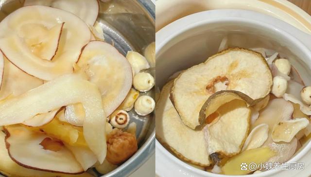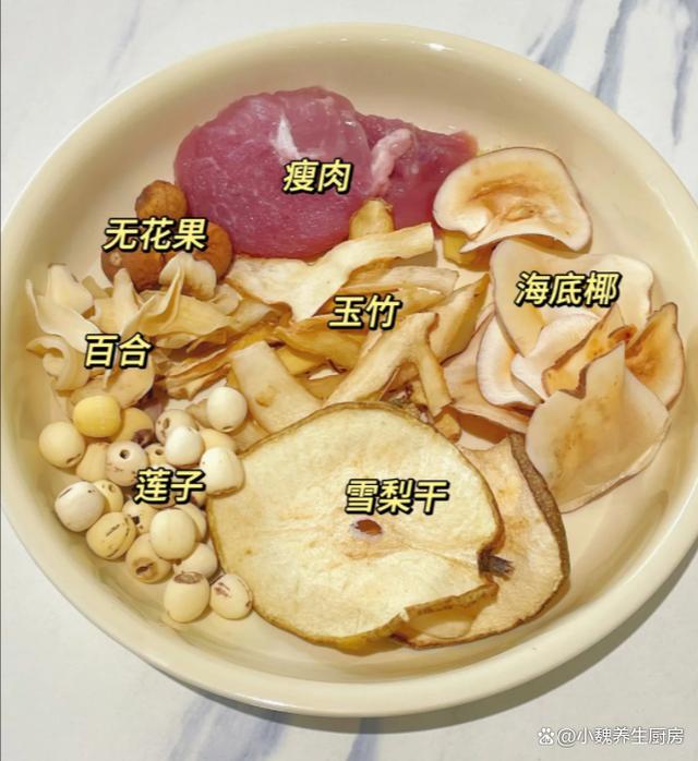 详细制作顺序: 第一步:提前准备好新鲜瘦肉,玉竹,雪梨干和其他食材,先把雪梨干用温水泡发几分钟,控干表面的水分。第二步:先把老姜切成片状,无花果提前温水泡一泡,百合提前泡软,方便撕掉表面一层薄膜,放在一边备用。第三步:把干莲子提前泡发,用工具挑出莲子心,这样炖出来的汤品不苦,海底椰和玉竹洗干净,放在一边备用。 第四步:将瘦肉洗净去掉一层筋膜,切成若干小块,然后用冷水浸泡,或者倒入锅中,加上少许料酒和姜片,把瘦肉焯烫去腥,准备好一些食材,开始烹饪这道海底椰玉竹雪梨干瘦肉汤。 第五步:把煲汤的砂锅都洗干净,锅中放入处理好的瘦肉,分别放入无花果,百合,莲子,玉竹,海底椰,雪梨干等食材,让食材营养都融入汤里。 第六步:调到大火炖煮至沸腾,然后小火煲80分钟,让瘦肉炖至熟透,调入一丢丢胡椒粉,加上少许食盐调味。第七步:也可以丢入一些枸杞子,焖煮2分钟即可,这款海底椰玉竹雪梨干瘦肉汤就烹饪完成了。 海底椰玉竹雪梨干瘦肉汤的制作小贴士:首先,食材的新鲜度至关重要。尽量选择当季的海底椰、玉竹和雪梨干,它们不仅风味更佳,也更能保留住自然的甘甜与清香。瘦肉方面,以猪腱肉为佳,因其肉质紧实,久煮不烂,能很好地融入汤中,增添风味。 其次,浸泡与清洗不容忽视。海底椰和玉竹需要提前用温水浸泡,这样不仅能去除表面的杂质,还能使其更容易释放出营养成分。雪梨干同样需要简单清洗,去除表面浮尘。瘦肉则需洗净后,用沸水焯去血水和腥味,确保汤品清澈。再者,火候的控制是炖汤的关键。建议使用砂锅或炖盅来慢炖,这样能够更好地锁住食材的鲜味与营养。大火烧开后转小火慢炖两小时左右,让时间慢慢酝酿出汤品的醇厚与甘甜。期间,可适时撇去浮沫,保持汤面的清洁。 最后,调味需谨慎。由于海底椰、玉竹和雪梨干本身都带有自然的甜味,因此在调味时,只需加入少许食盐提味即可,避免过多的调料掩盖了食材的本真味道。若喜欢更清淡的口感,甚至可以不加盐,直接品尝食材的原汁原味。 遵循这些小贴士,相信您定能熬制出一锅色香味俱佳的海底椰玉竹雪梨干瘦肉汤,为家人带来一份温暖的健康滋味。 网友们,你们是否掌握海底椰玉竹雪梨干瘦肉汤的制作技巧呢?(上述配图均出自网络)